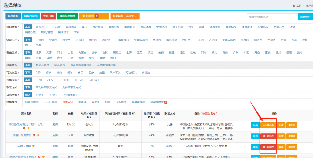 第二步【选择媒体】【加入购物车】